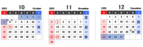 ※土曜日は不定期になります。実施日を確認の上、ご予約をお願いします。