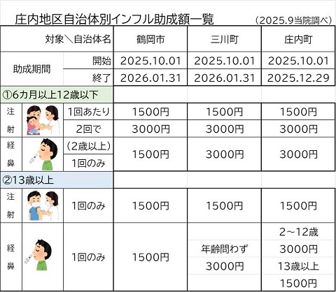 2025~2026年シーズンのインフルエンザ予防接種のお知らせを更新しました。